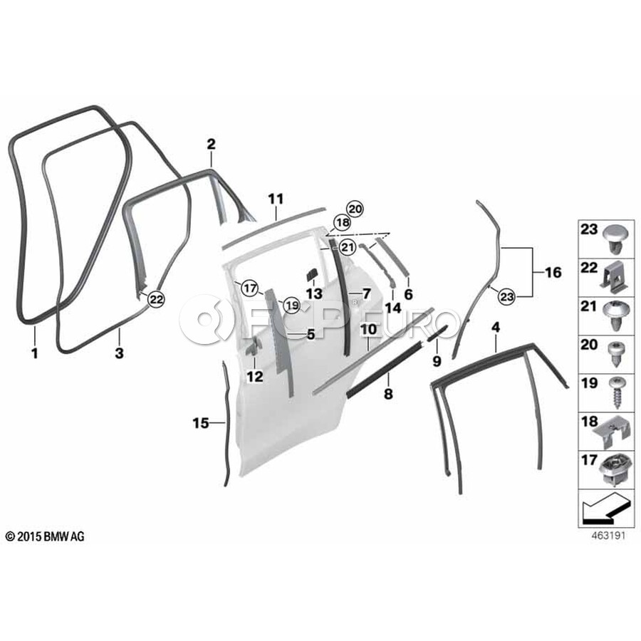 BMW Finisher Window Frame Top Door Rr Rt (Alu Satiniert) - Genuine BMW 51357317808