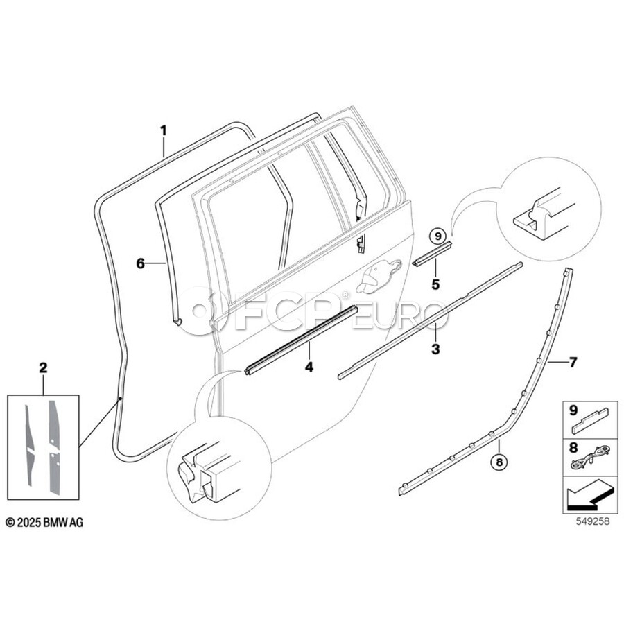 BMW Gasket Door Joint Roof Door Rear Rght - Genuine BMW 51227057448