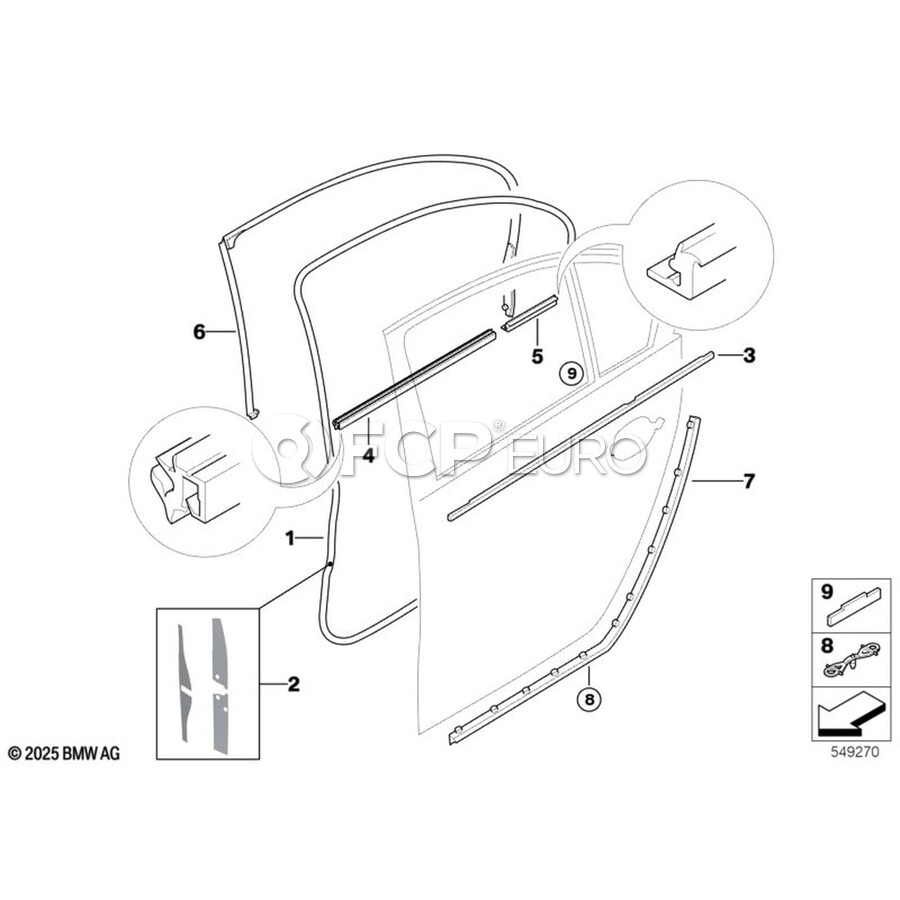 BMW Gasket Door Joint Roof Door Rear Rght - Genuine BMW 51227057510