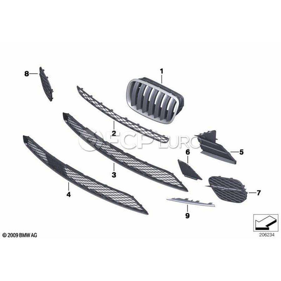 BMW Grille Middle Bottom (Alu Matt) - Genuine BMW 51117222854