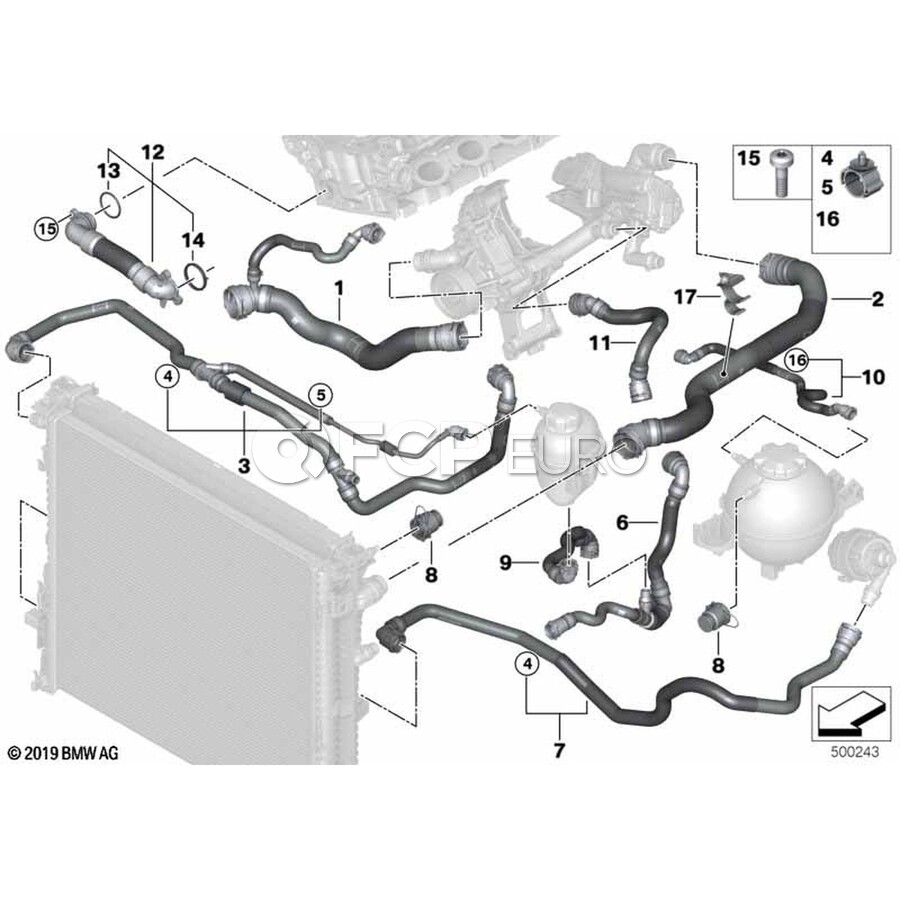 BMW Radiator Coolant Hose - Genuine BMW 17125A022E3