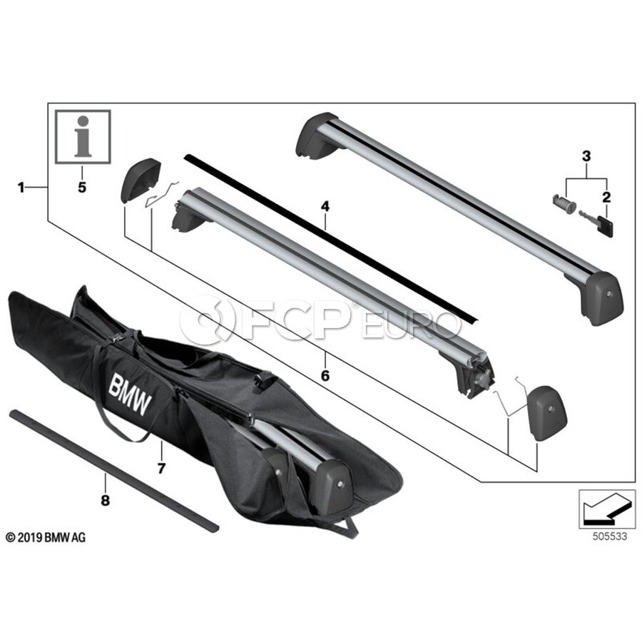 BMW Roof Rack Base Bars - Genuine BMW 82712457814