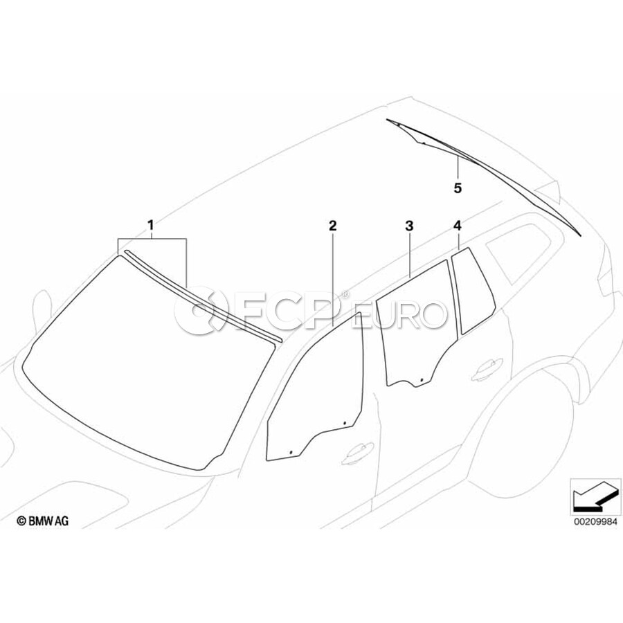 BMW Side Window Green Door Front Left - Genuine BMW 51333332309
