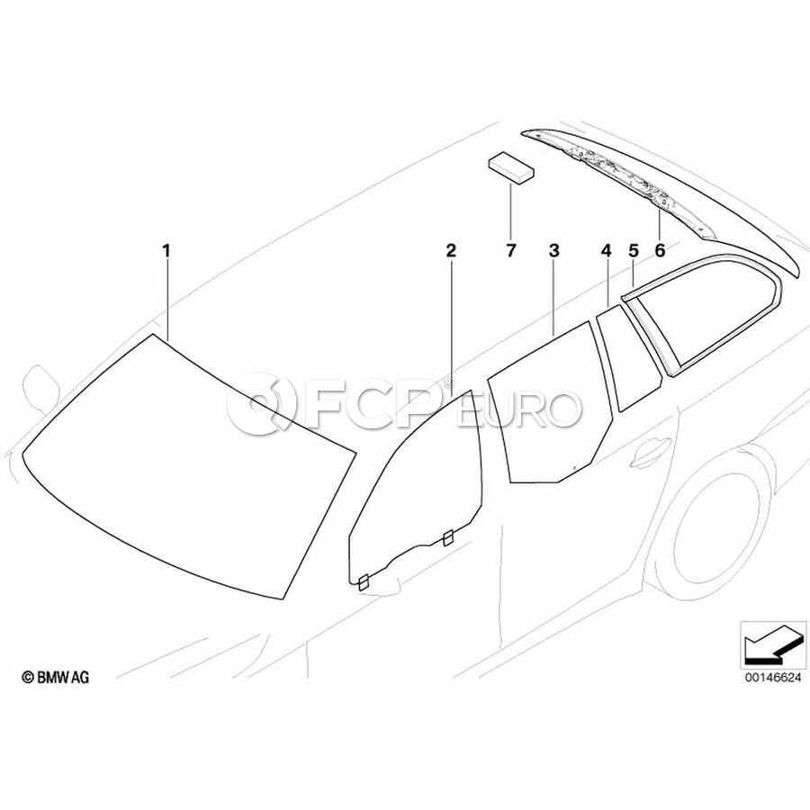 BMW Side WindowGreen FixedLeft Rear Door - Genuine BMW 51357044175
