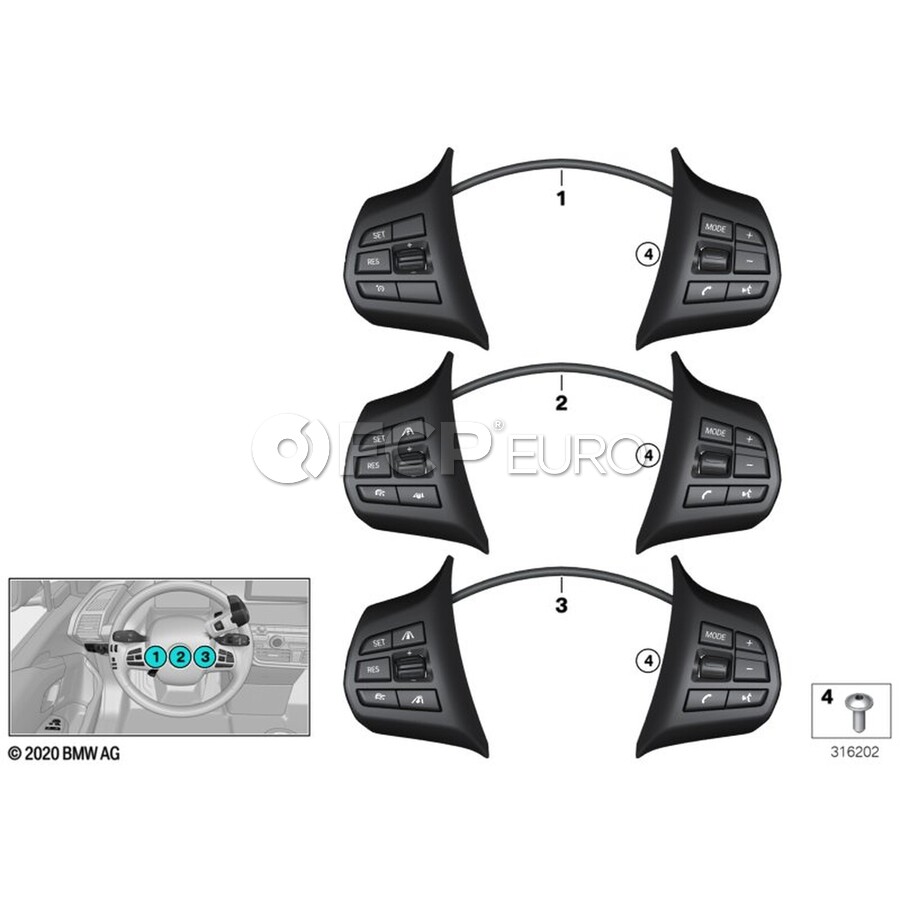 BMW Switch Multifunct.Steering Wheel Sport - Genuine BMW 61319324277