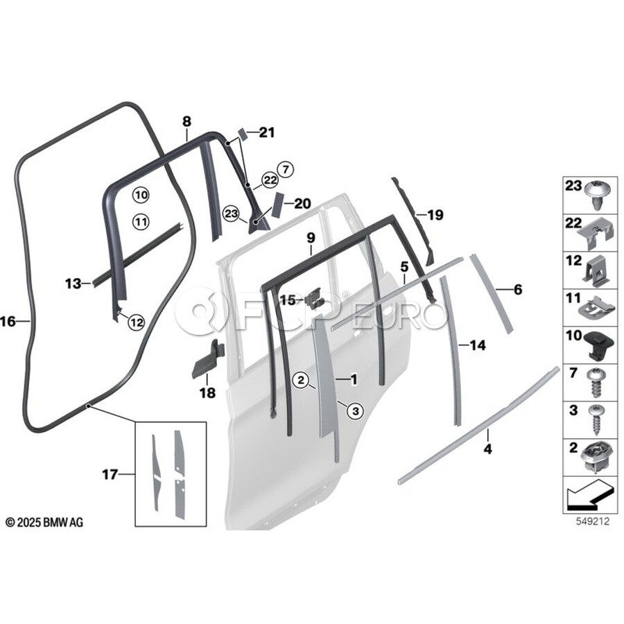 BMW Window Frame Cover Rear Left Door (SwHgl) - Genuine BMW 51357335677