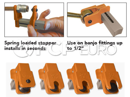 Snugly clamps onto the end of disconnected fluid lines and banjo fittings. Comes in 4 sizes to use on brake, oil, transmission, A/C, fuel, and other fluid lines in the car.